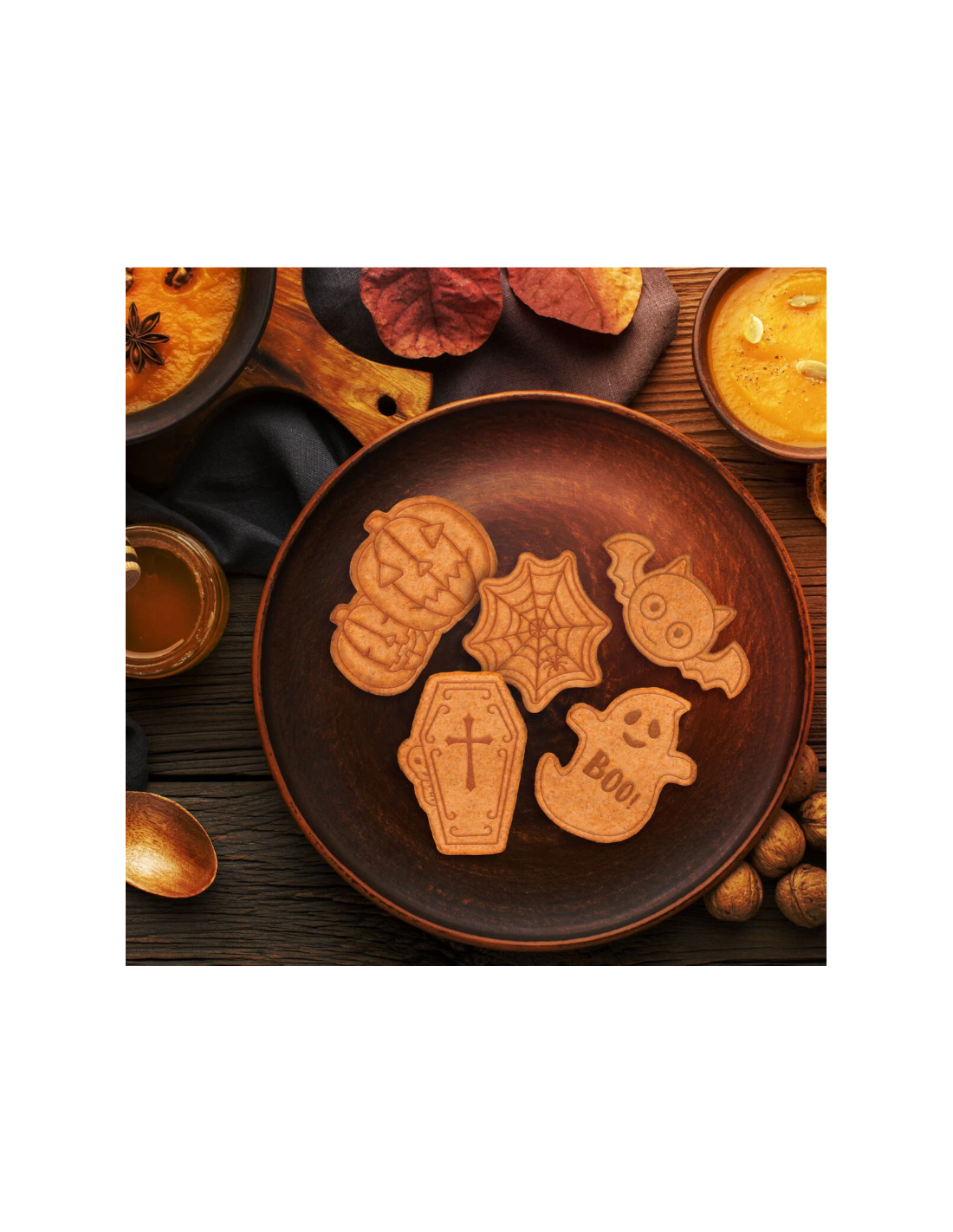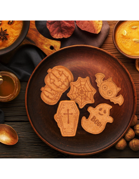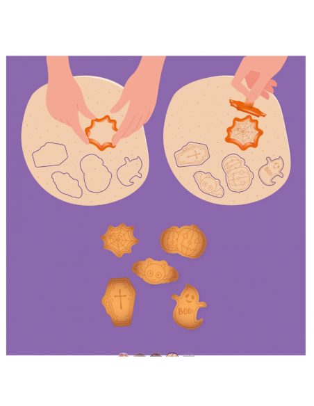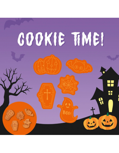 Basta preparare un party a tema Halloween con le Formine Tagliabiscotti Bake Me Happy di Legami. Scegli il tuo stampo tra 5 forme diverse, imprimi i dettagli con il timbro e gustati dei biscotti da paura! Persino la zucca, così, è più buona!