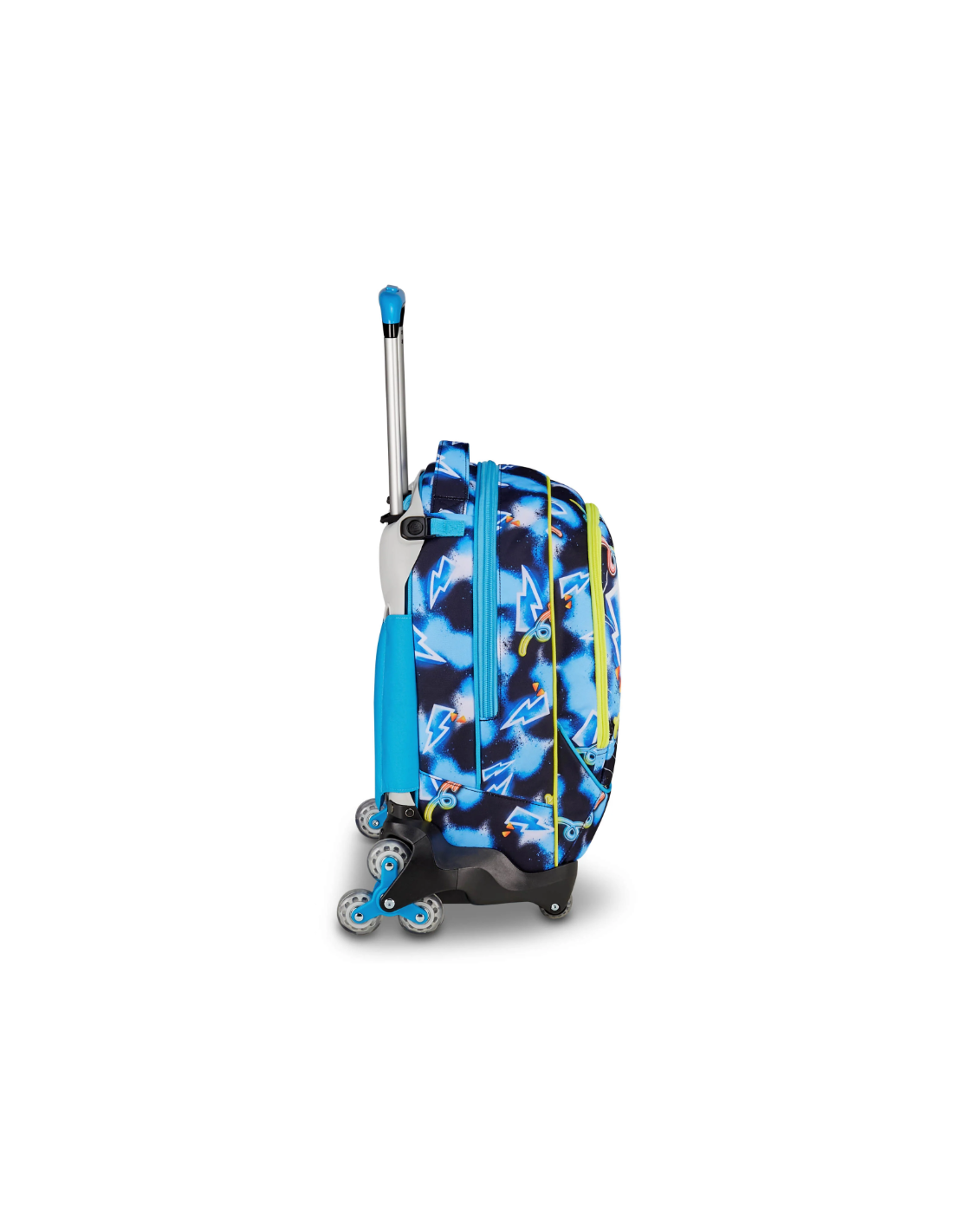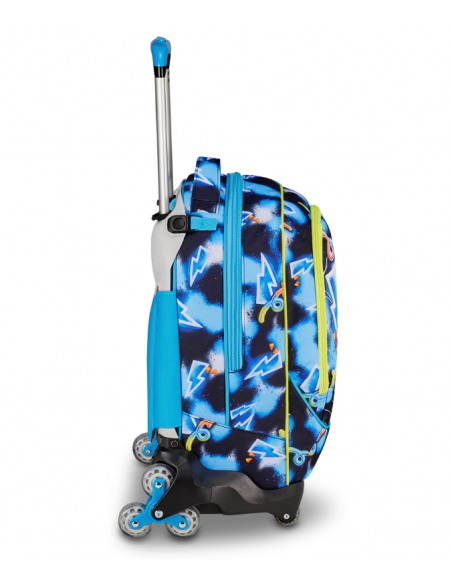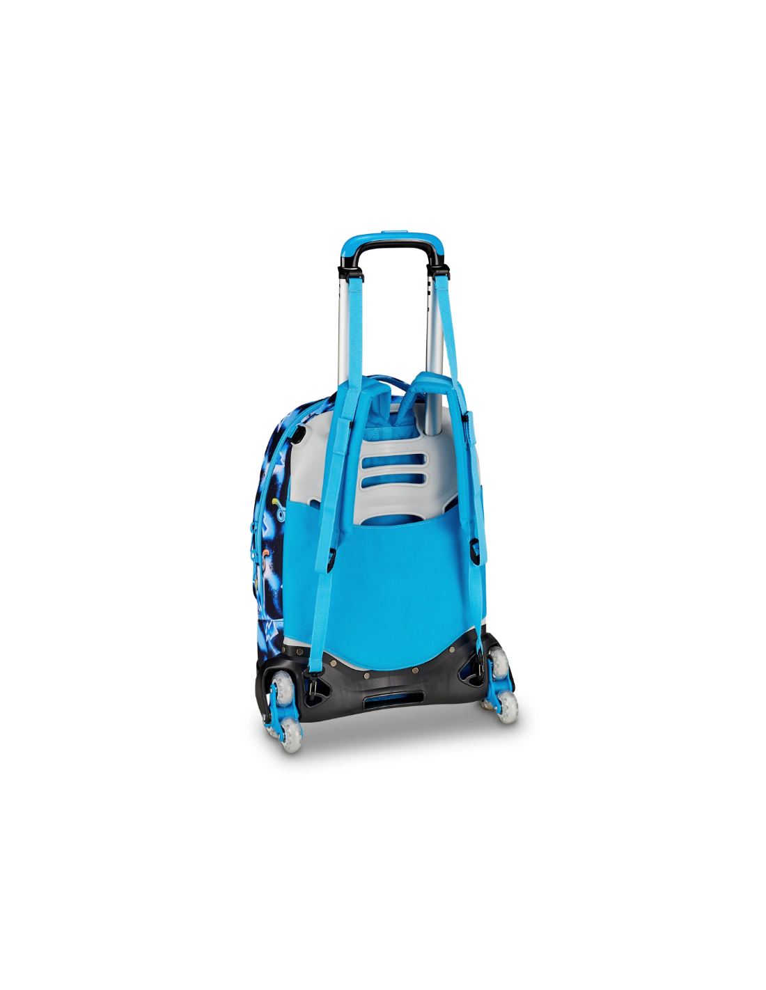 Il Trolley SJ GANG Jack-8WD è uno zaino con carrello sganciabile dotato del nuovo sistema a 8 ruote. Grazie alle 2 ruote anteriori puoi spingerlo senza inclinarlo, rendendo agevoli i piccoli spostamenti in classe o quando sei seduto al banco, mentre le 6 ruote posteriori facilitano la salita dei gradini, affrontandoli sempre con la giusta cautela. Lo zaino, provvisto al suo interno anche di una tasca porta borraccia, è capiente e da riempire con quello che ti serve: libri, quaderni per scuola, o il cambio per l'allenamento. Schienale e spallacci imbottiti inoltre rendono lo zaino comodo da indossare sulle spalle, mentre se lo agganci al carrello dotato di doppia barra telescopica, protezioni angolari e fondo rinforzato è maneggevole, stabile, pratico e sicuro da trascinare come trolley.