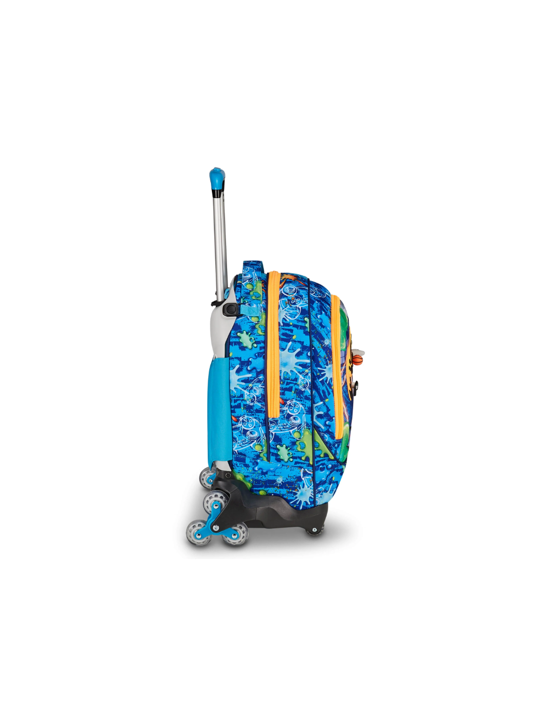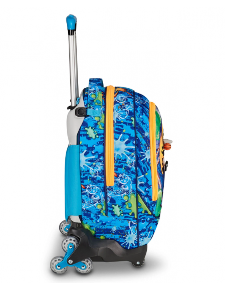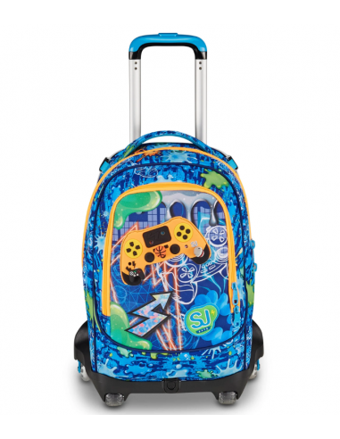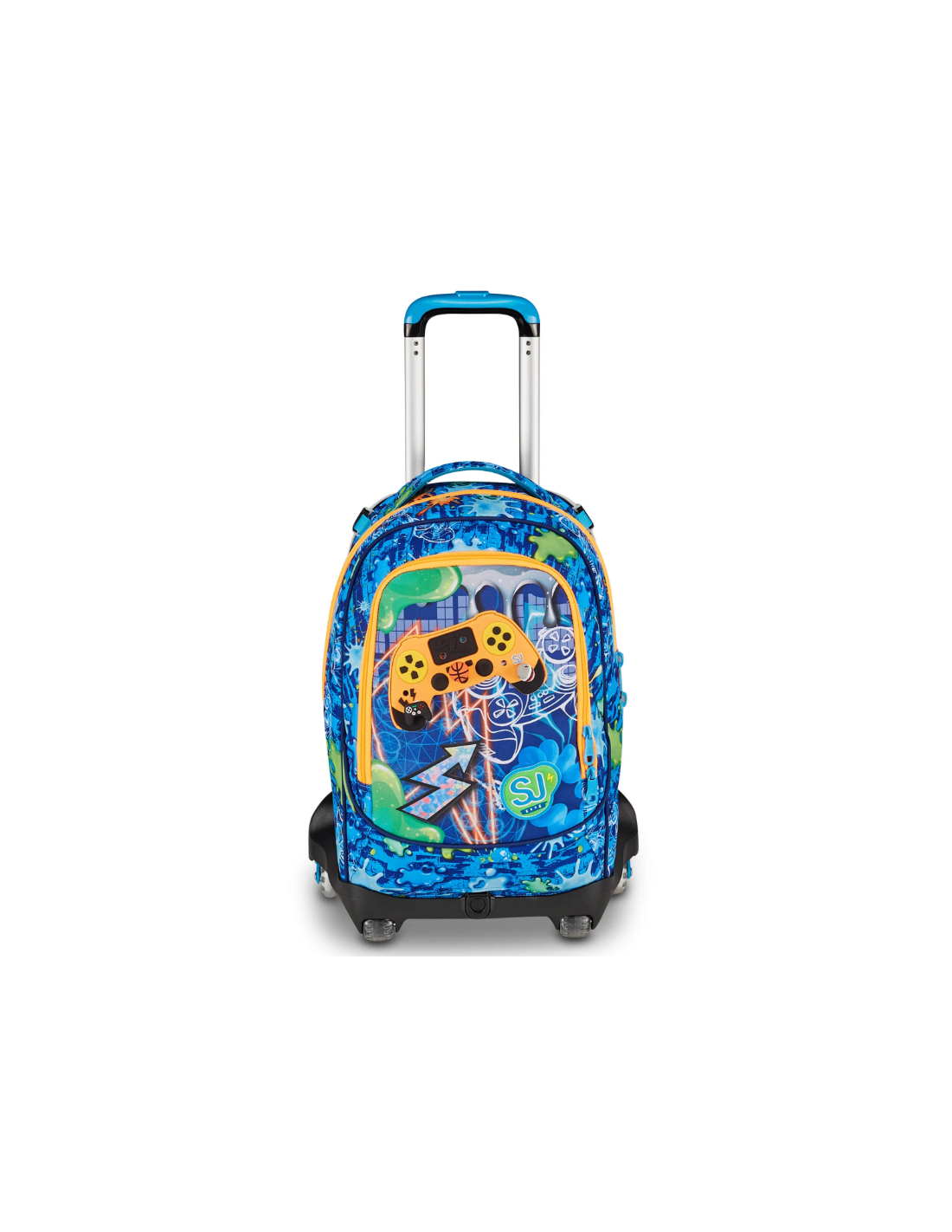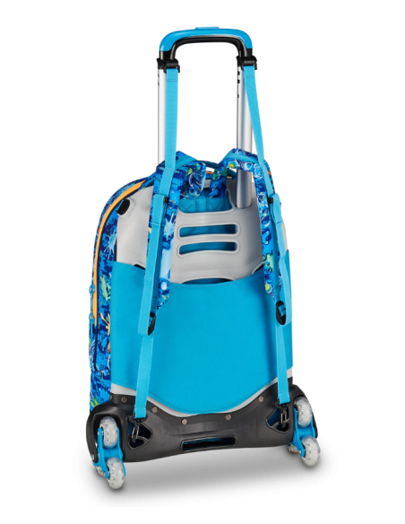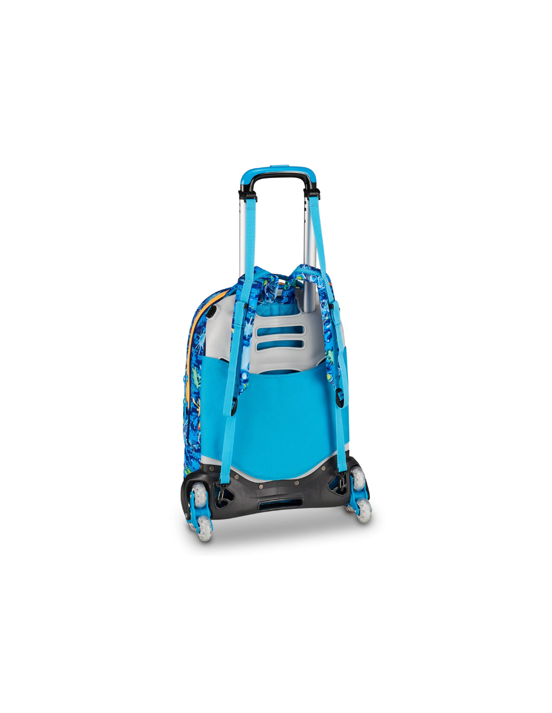Il Trolley SJ GANG Jack-8WD è uno zaino con carrello sganciabile dotato del nuovo sistema a 8 ruote. Grazie alle 2 ruote anteriori puoi spingerlo senza inclinarlo, rendendo agevoli i piccoli spostamenti in classe o quando sei seduto al banco, mentre le 6 ruote posteriori facilitano la salita dei gradini, affrontandoli sempre con la giusta cautela. Lo zaino, provvisto al suo interno anche di una tasca porta borraccia, è capiente e da riempire con quello che ti serve: libri, quaderni per scuola, o il cambio per l'allenamento. Schienale e spallacci imbottiti inoltre rendono lo zaino comodo da indossare sulle spalle, mentre se lo agganci al carrello dotato di doppia barra telescopica, protezioni angolari e fondo rinforzato è maneggevole, stabile, pratico e sicuro da trascinare come trolley.