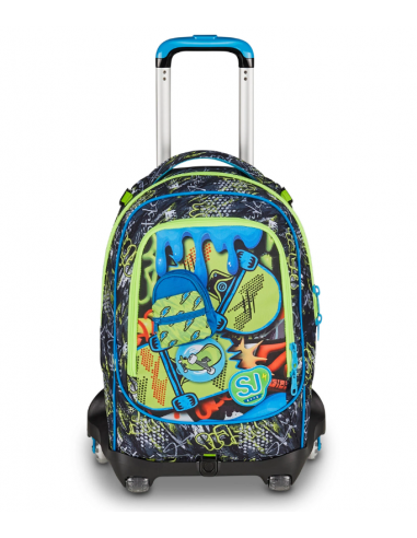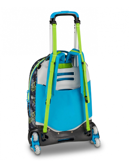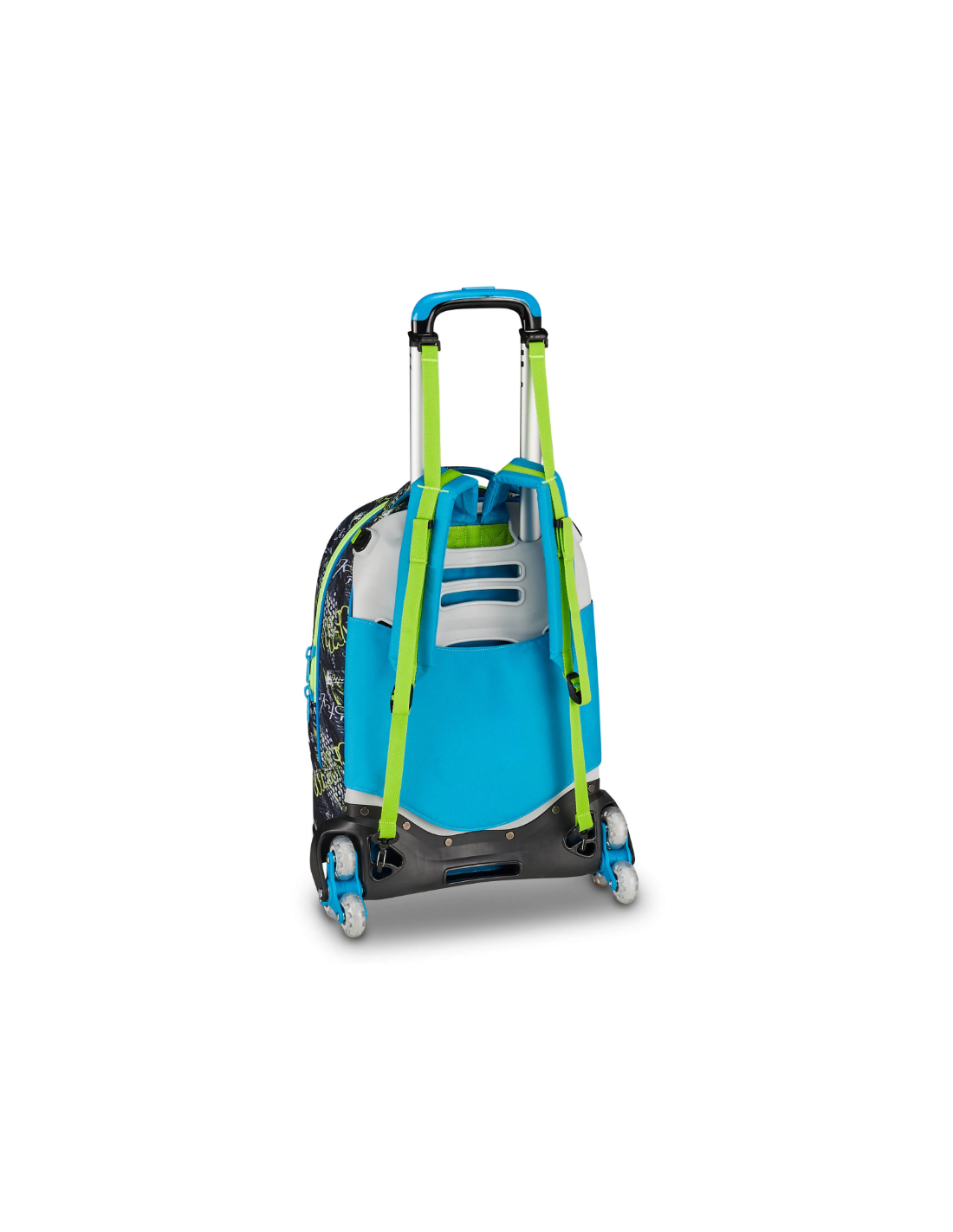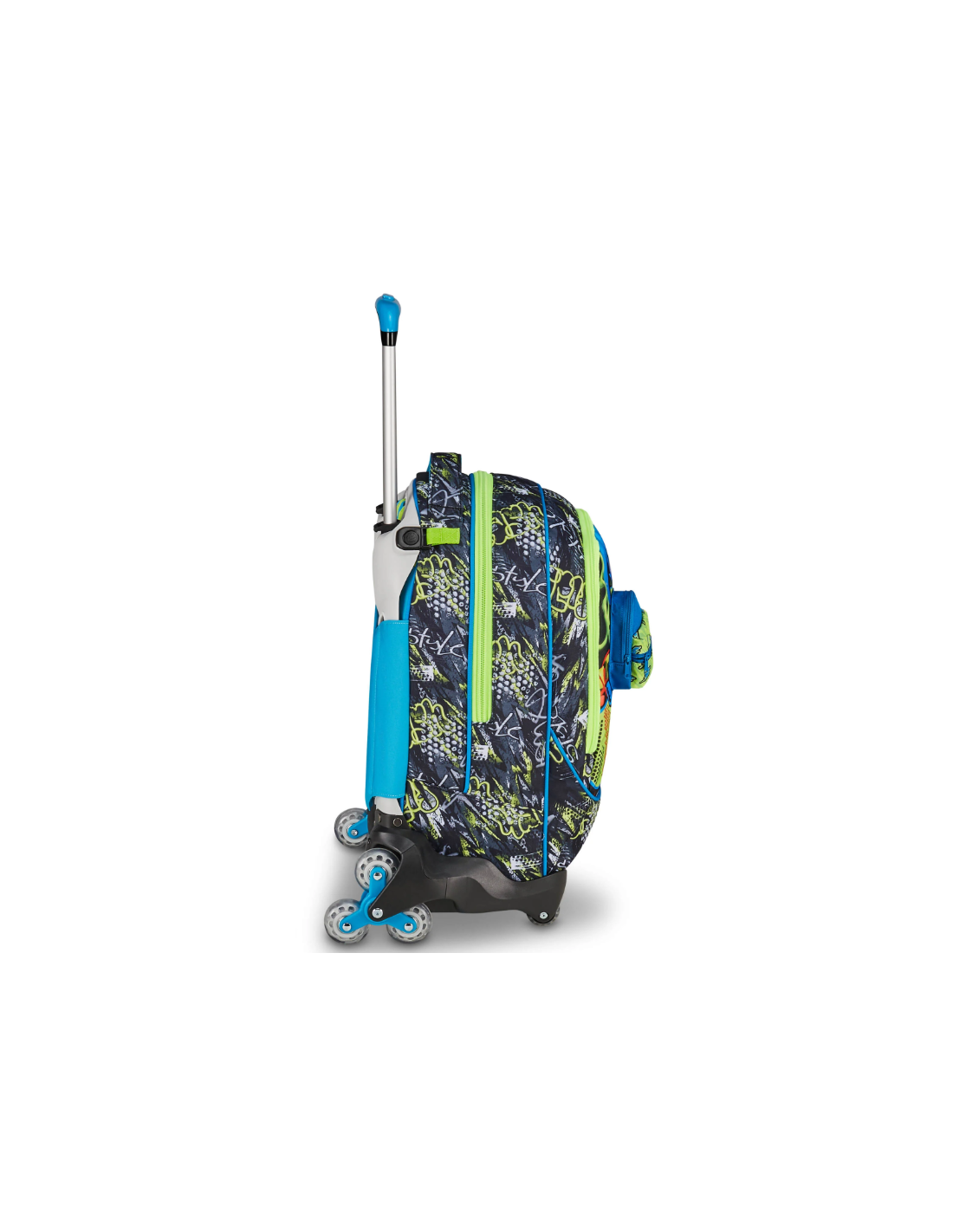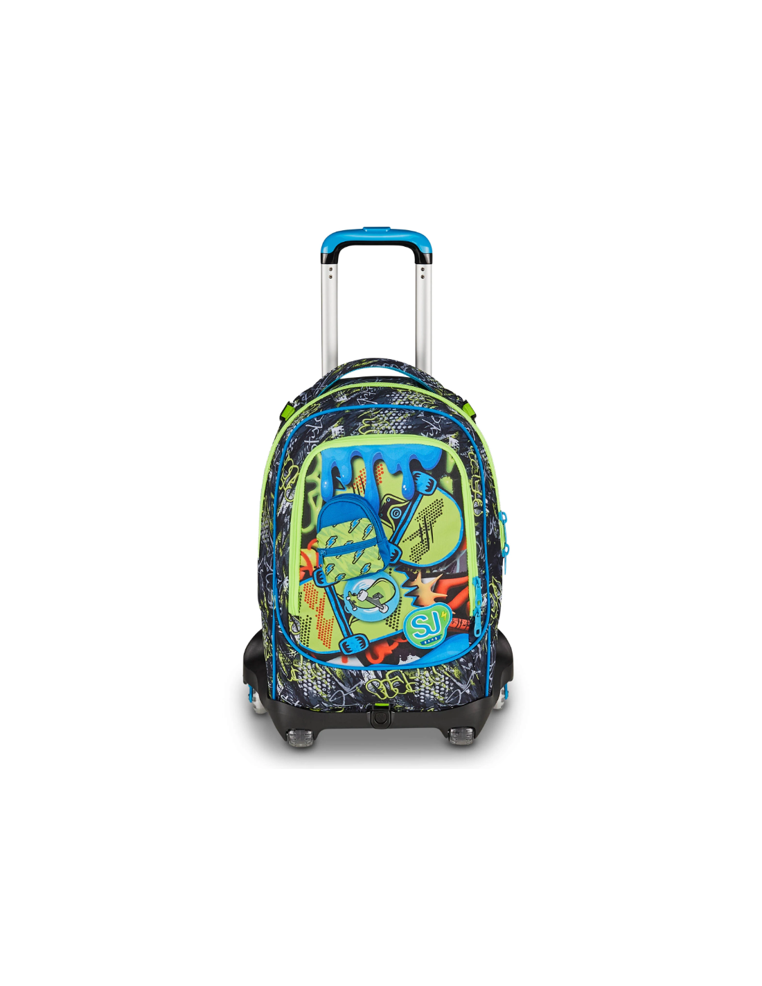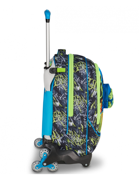 Il Trolley SJ GANG Jack-8WD è uno zaino con carrello sganciabile dotato del nuovo sistema a 8 ruote. Grazie alle 2 ruote anteriori puoi spingerlo senza inclinarlo, rendendo agevoli i piccoli spostamenti in classe o quando sei seduto al banco, mentre le 6 ruote posteriori facilitano la salita dei gradini, affrontandoli sempre con la giusta cautela. Lo zaino, provvisto al suo interno anche di una tasca porta borraccia, è capiente e da riempire con quello che ti serve: libri, quaderni per scuola, o il cambio per l'allenamento. Schienale e spallacci imbottiti inoltre rendono lo zaino comodo da indossare sulle spalle, mentre se lo agganci al carrello dotato di doppia barra telescopica, protezioni angolari e fondo rinforzato è maneggevole, stabile, pratico e sicuro da trascinare come trolley.