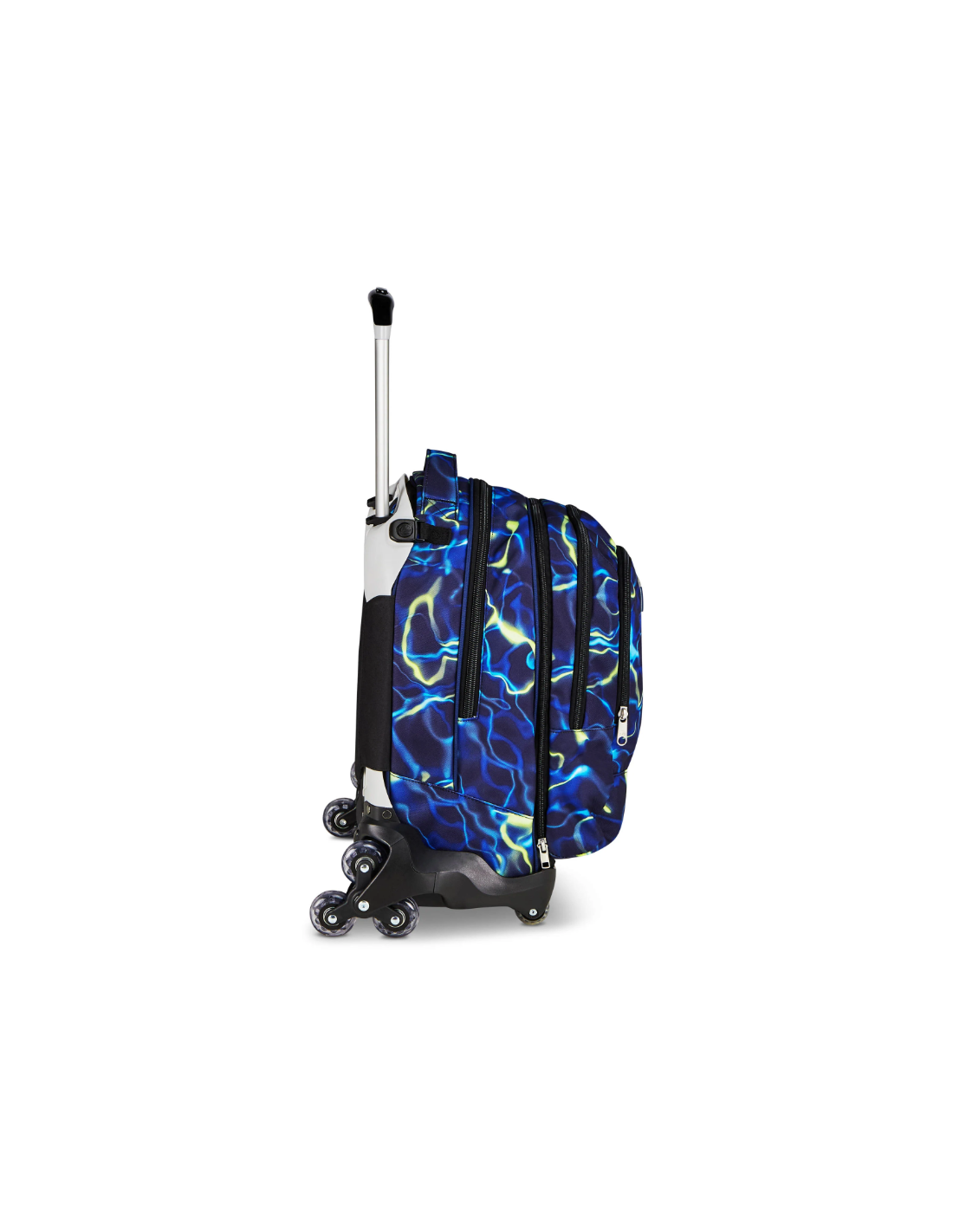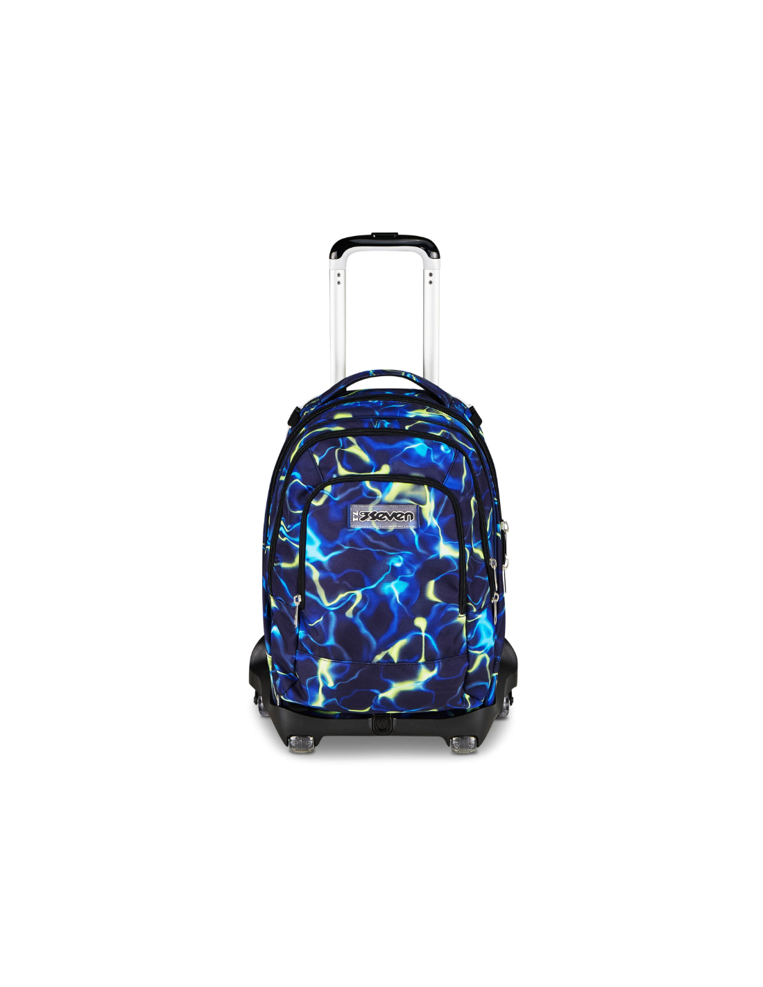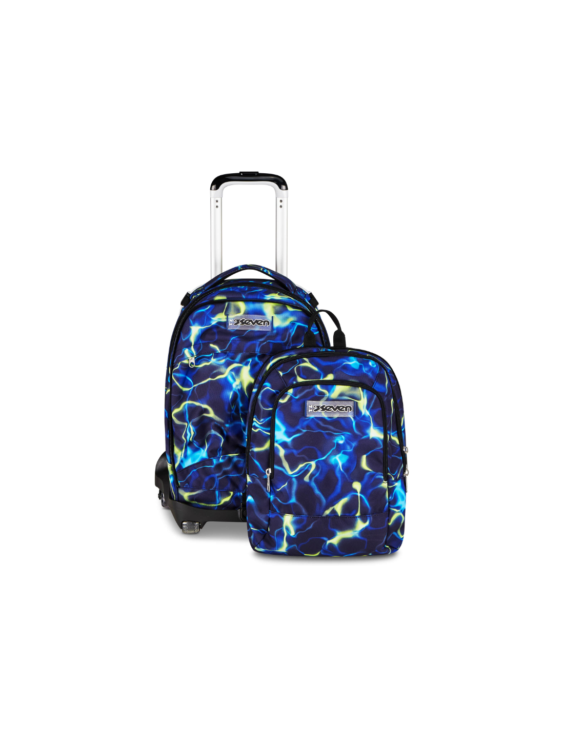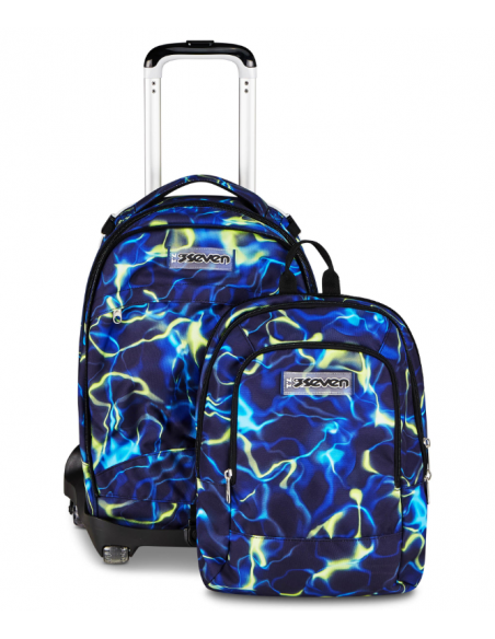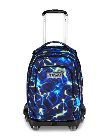 Il Trolley Seven è dotato del nuovo sistema a 8 ruote. Grazie alle 2 ruote anteriori puoi spingerlo senza inclinarlo, rendendo agevoli i piccoli spostamenti in classe o quando sei seduto al banco, mentre le 6 ruote posteriori facilitano la salita dei gradini, affrontandoli sempre con la giusta cautela. Lo zaino è capiente, da riempire con quello che ti serve: libri, quaderni per scuola, o il cambio per l'allenamento. Lo scomparto frontale, inoltre, si può staccare tramite zip ed essere usato come zainetto. Schienale e spallacci imbottiti inoltre rendono lo zaino comodo da indossare sulle spalle, mentre se lo agganci al carrello dotato di doppia barra telescopica, protezioni angolari e fondo rinforzato è maneggevole, stabile, pratico e sicuro da trascinare come trolley.
