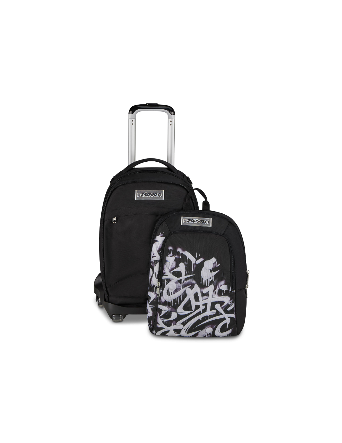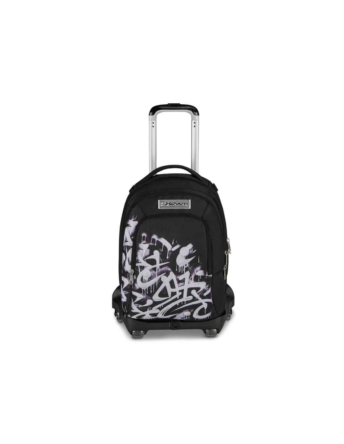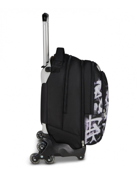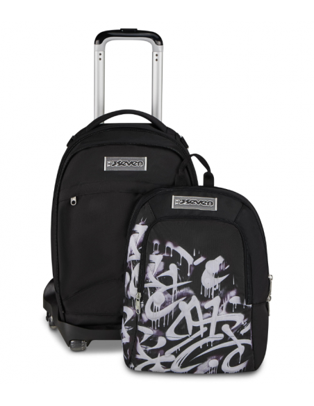Il Trolley Seven è dotato del nuovo sistema a 8 ruote. Grazie alle 2 ruote anteriori puoi spingerlo senza inclinarlo, rendendo agevoli i piccoli spostamenti in classe o quando sei seduto al banco, mentre le 6 ruote posteriori facilitano la salita dei gradini, affrontandoli sempre con la giusta cautela. Lo zaino è capiente, da riempire con quello che ti serve: libri, quaderni per scuola, o il cambio per l'allenamento. Lo scomparto frontale, inoltre, si può staccare tramite zip ed essere usato come zainetto. Schienale e spallacci imbottiti inoltre rendono lo zaino comodo da indossare sulle spalle, mentre se lo agganci al carrello dotato di doppia barra telescopica, protezioni angolari e fondo rinforzato è maneggevole, stabile, pratico e sicuro da trascinare come trolley.