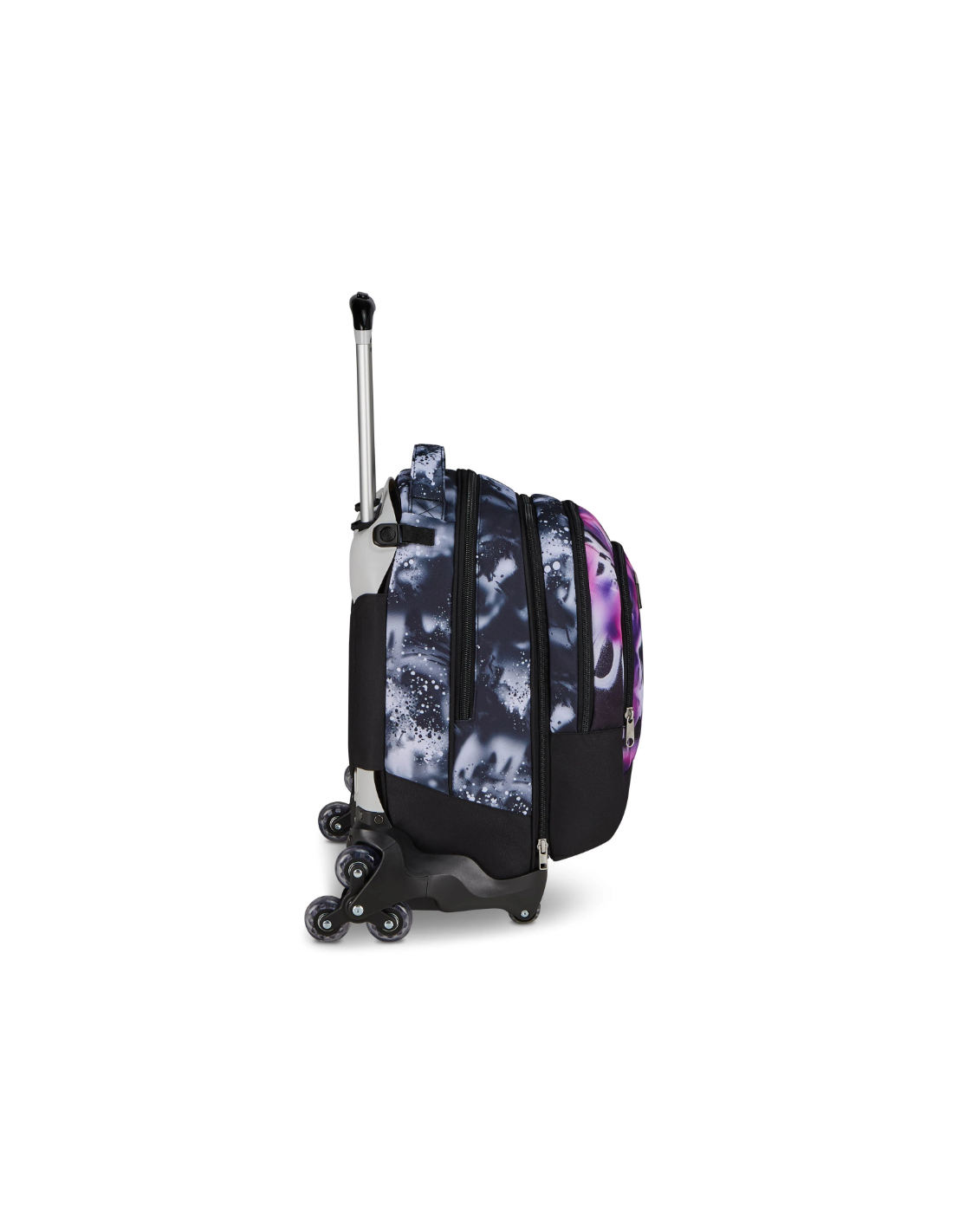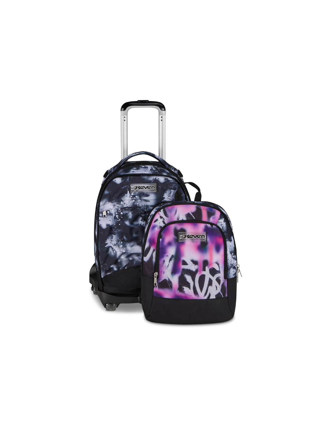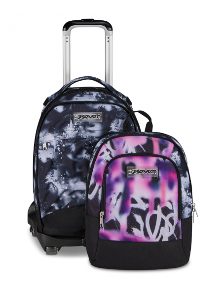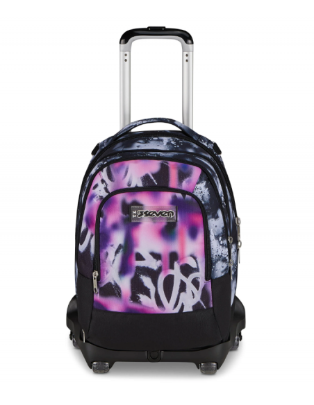 Il Trolley Seven è dotato del nuovo sistema a 8 ruote. Grazie alle 2 ruote anteriori puoi spingerlo senza inclinarlo, rendendo agevoli i piccoli spostamenti in classe o quando sei seduto al banco, mentre le 6 ruote posteriori facilitano la salita dei gradini, affrontandoli sempre con la giusta cautela. Lo zaino è capiente, da riempire con quello che ti serve: libri, quaderni per scuola, o il cambio per l'allenamento. Lo scomparto frontale, inoltre, si può staccare tramite zip ed essere usato come zainetto. Schienale e spallacci imbottiti inoltre rendono lo zaino comodo da indossare sulle spalle, mentre se lo agganci al carrello dotato di doppia barra telescopica, protezioni angolari e fondo rinforzato è maneggevole, stabile, pratico e sicuro da trascinare come trolley.
