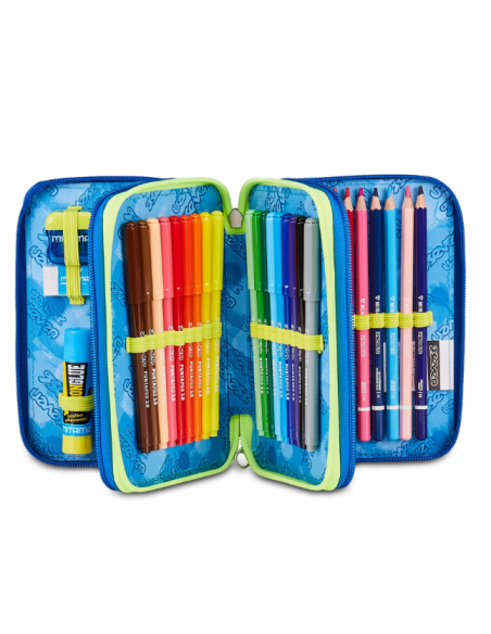 Questo astuccio Seven 3 zip ha tre scomparti in cui troverai tutto il materiale necessario per la tua giornata di scuola. A te non resta altro che abbinarlo a uno zaino o trolley Seven.