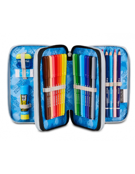 Questo astuccio Seven 3 zip ha tre scomparti in cui troverai tutto il materiale necessario per la tua giornata di scuola. A te non resta altro che abbinarlo a uno zaino o trolley Seven.